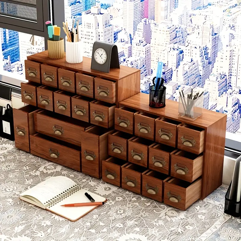 Этот ретро-деревянный многослойный ящик коллекторов, содержащий внешний уровень и практическую подотчетность рабочего стола, содержащий чай и украшения, собранные в одном месте, с помощью ретро-текстуры, открывает новые способы получения изымного урожая.