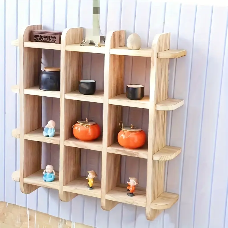 Деревянный чайный сервиз выставочный стеллаж Боку Стены сплошная древесина Современный простой дом Добао Стена Китайская чайная полка стеллаж