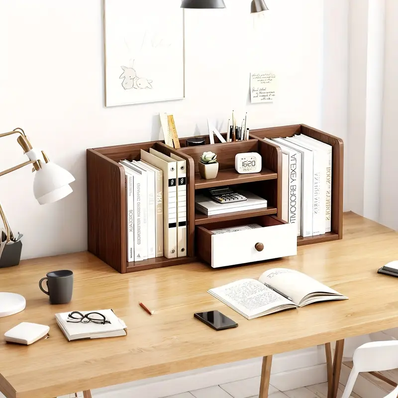 Комод для хранения книг и мелочей на деревянном столе, многоуровневый небольшой книжный шкаф для студентов, домашний вариант, простой и удобный.