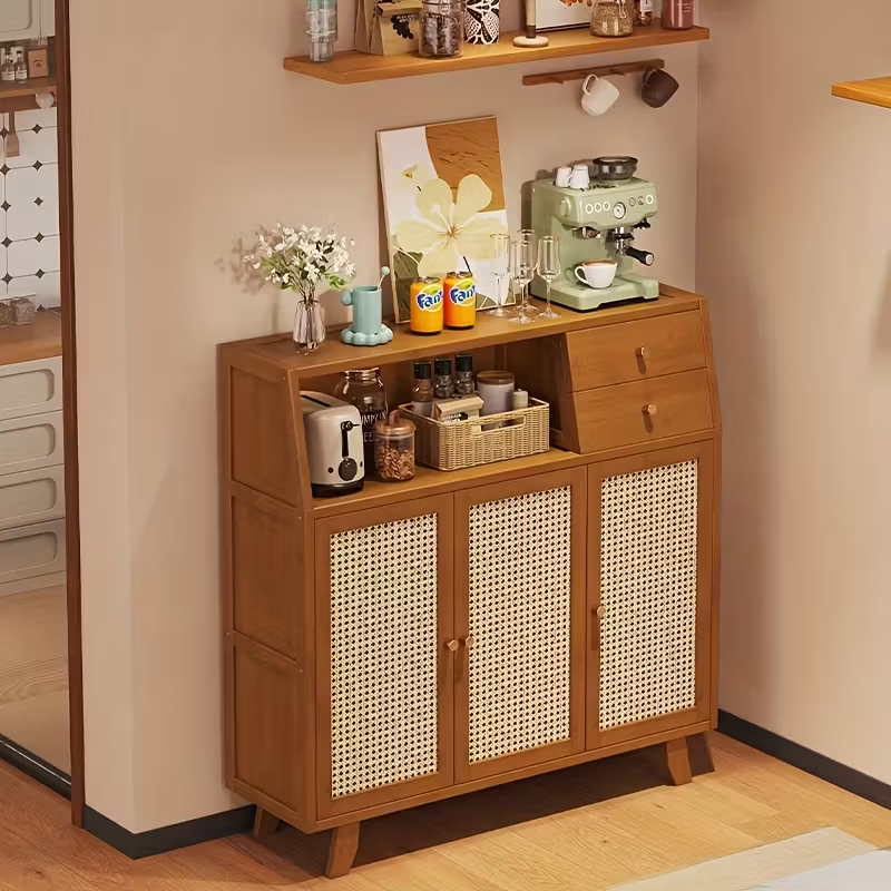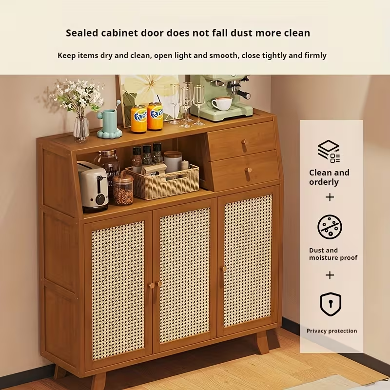 Выбирая высококачественный деревянный шкаф, естественная деревянная текстура отчётливо видна, в сочетании с классическим коричневым оттенком и ретро-рифмой. Кузов интегрируется в короткие линии и непрозрачные металлические дуги, частично приукрашенные вручную, сталкиваясь с ностальгической и неутратившей текстуру домашней обстановкой, совместимой со многими стилями интерьера, такими как северная Европа, Япония, ретро-ветер. Экологически чистая краска без запаха, измельчительная и шлифуемая, а также влажная среда на кухне может быть устойчивой и не деформироваться слишком долго.