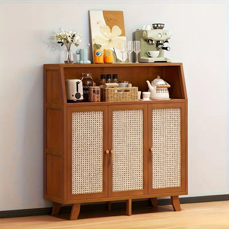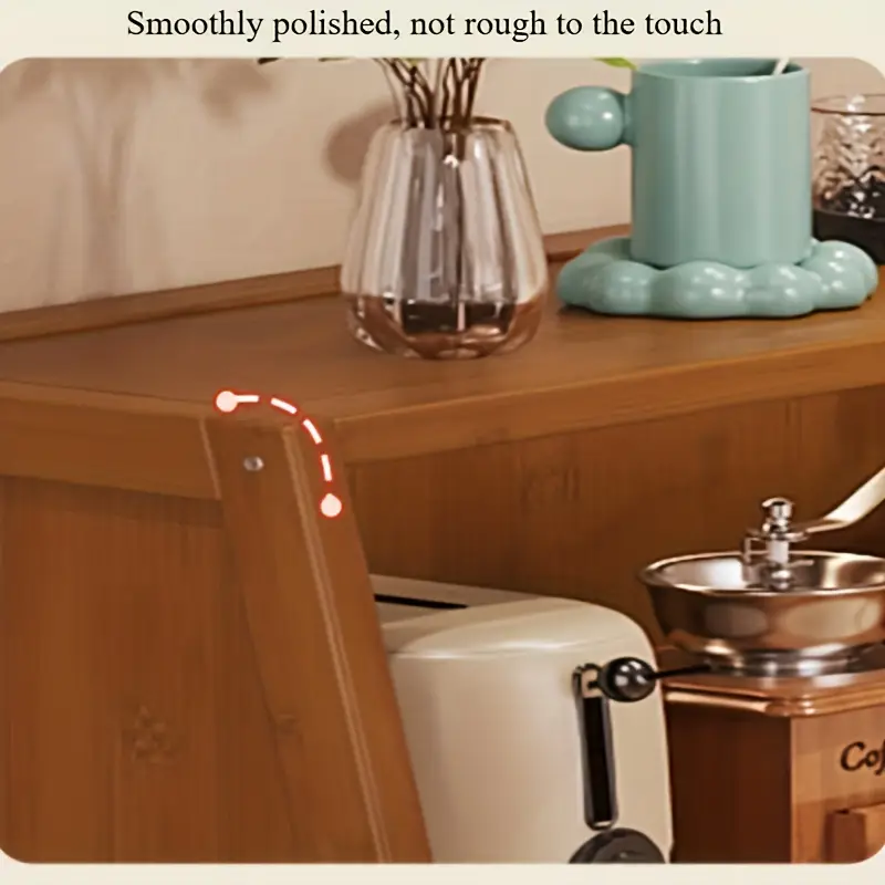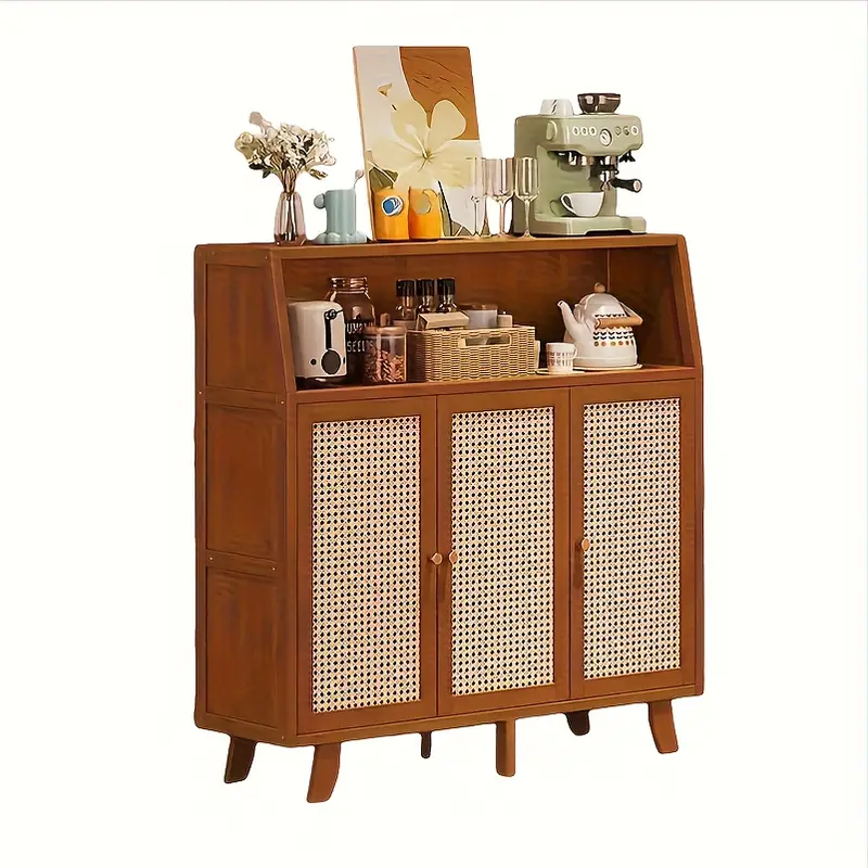 Многофункциональный дизайн универсального типа чрезвычайно практичен: верхний открытый стол с кофеваркой, чайным сервизом, украшениями; Закрытые шкафы + шкафы, классифицированные столовые приборы, закуски, ингредиенты, всякая всячина, более аккуратная защита от пыли; Нижняя резервная зона может размещать такие большие части, как рисовые бочки, печи и т.п., вертикальное расширение не занимает лишнюю площадь.