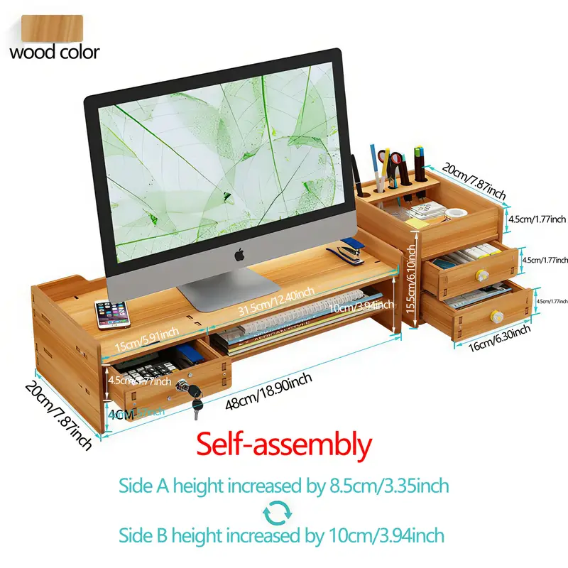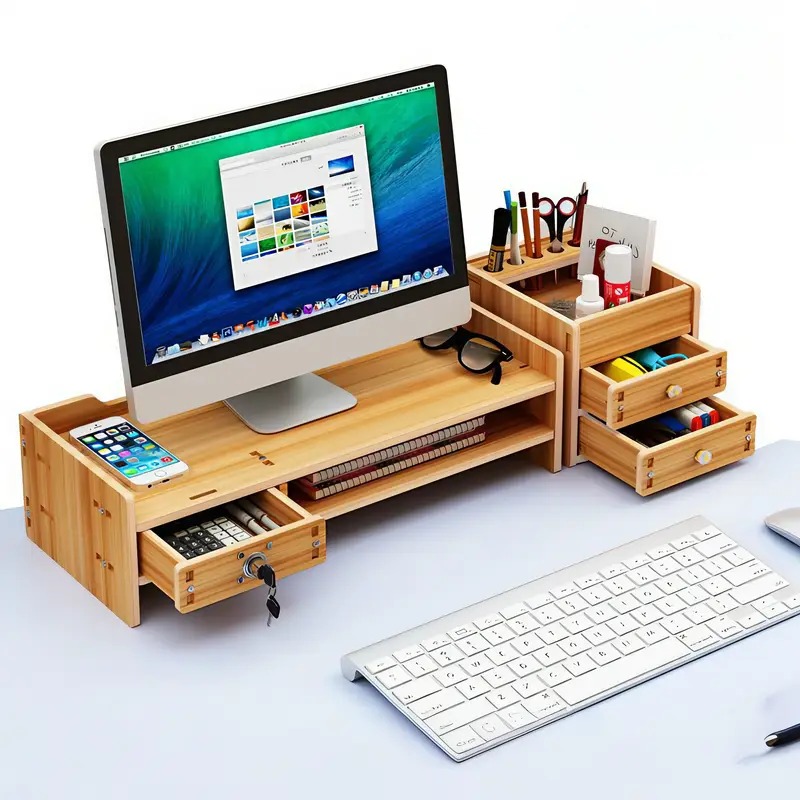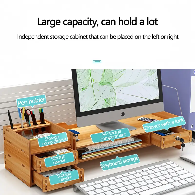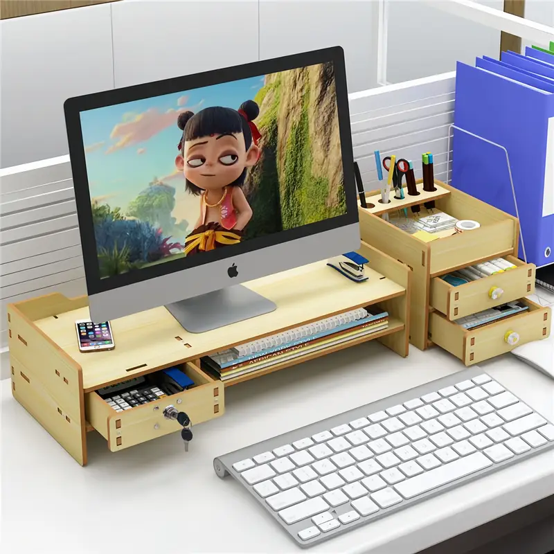 Ядро проектирует прямой удар по больному месту: увеличение высоты науки, поднятие монитора в горизонтальном положении, снятие усталости шейных позвонков и более комфортное сидение в офисе; Зарезервированное внизу достаточно теплового пространства, чтобы избежать перегрева монитора, в то же время облегчая доступ к клавиатуре, мышке и освобождая операционные области рабочего стола; Встроенный выдвижной ящик, точный набор канцелярских принадлежностей, флеш-дисков, кабелей данных и т.д.