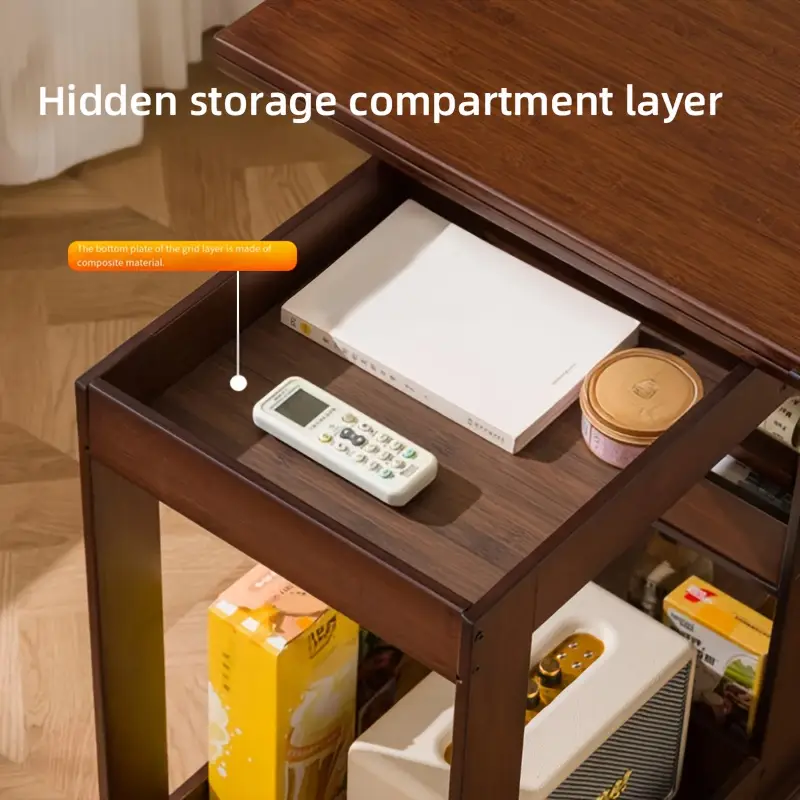 Также спрятаны складные хитрости, не нужно время, чтобы мягко убрать, объем значительно уменьшился, дно дивана, углы не занимают земли, партия аренды жилья также может легко принять. Слоистый дизайн размещения очень интимный, верхний слой помещает общие предметы, нижний слой принимает журналы, зеленые растения, так что небольшое пространство остается чистым.