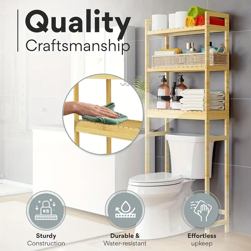 Простой деревянный образ, без швов интегрированный в современные, японские, северные и другие туалеты, является одновременно и сборным, и мягким. Простая установка без инструментов, гибкая мобильность, идеальное решение проблем сортировки туалетных принадлежностей и уборных инструментов в соответствии с требованиями.