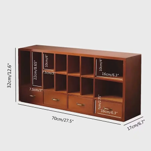 Ретро-деревянные ящики с ностальгической обстановкой, созданные специально для рабочего стола, с многослойным зонированным дизайном плюс естественная деревянная текстура, с тем чтобы мелкие предметы, такие как канцелярская, аксессуары, косметика, липкая лента, были расставлены по своим позициям и украшены горизонтальным образом.