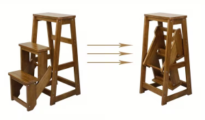 Многофункциональная деревянная лестница с многоступенчатой домашней лестницей с уплотнённым слогом внутри дома и двумя тремя маленькими ступенчатыми стульями